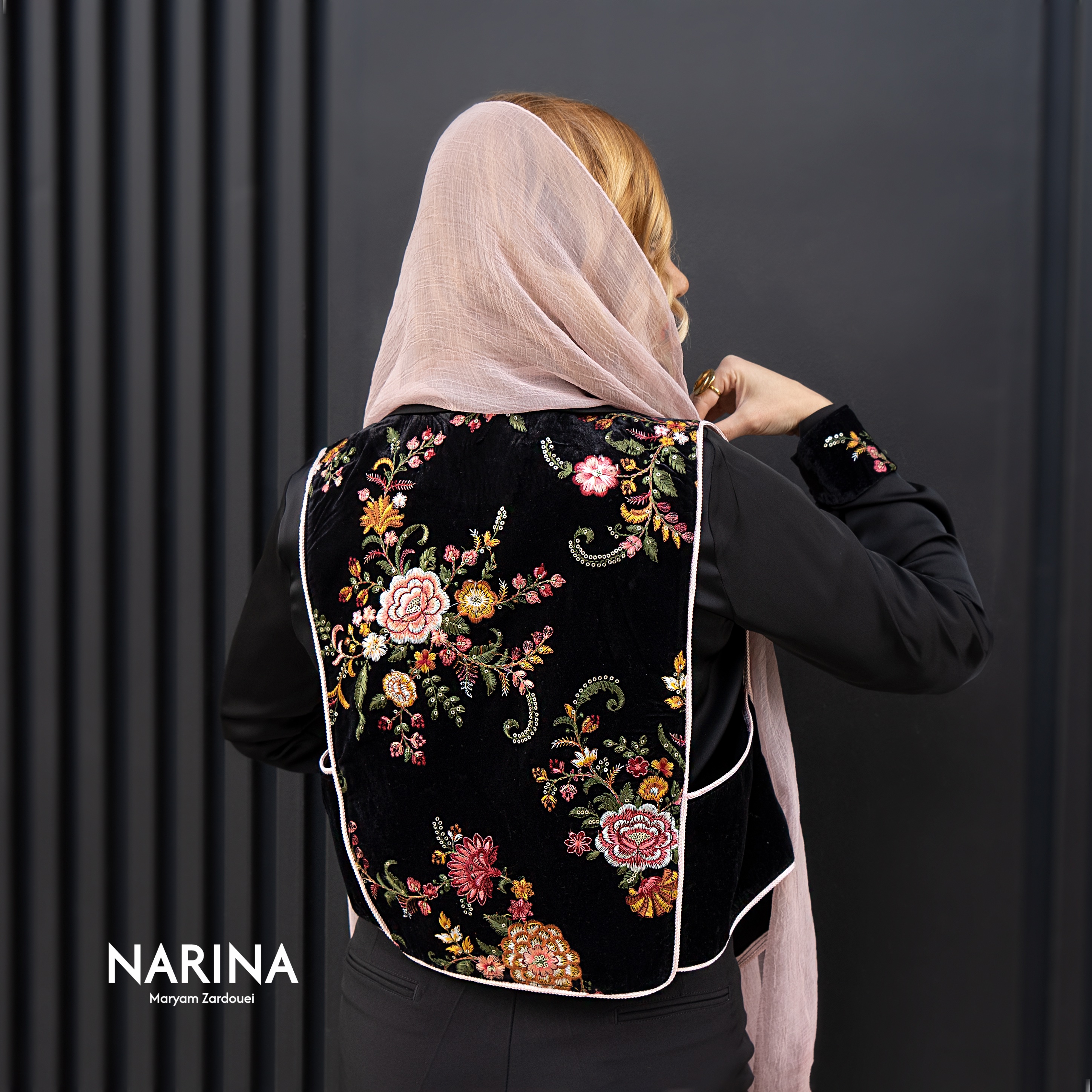 جنس جلیقه مخمل گل برجسته هندی است طراحی متفاوت قسمت پشت جلیقه زیبایی آن را دو چندان کرده است قسمت داخل کار تماما لایی کشی شده است کت تا دور کمر ۱۲۰ سانت مناسب میباشد
