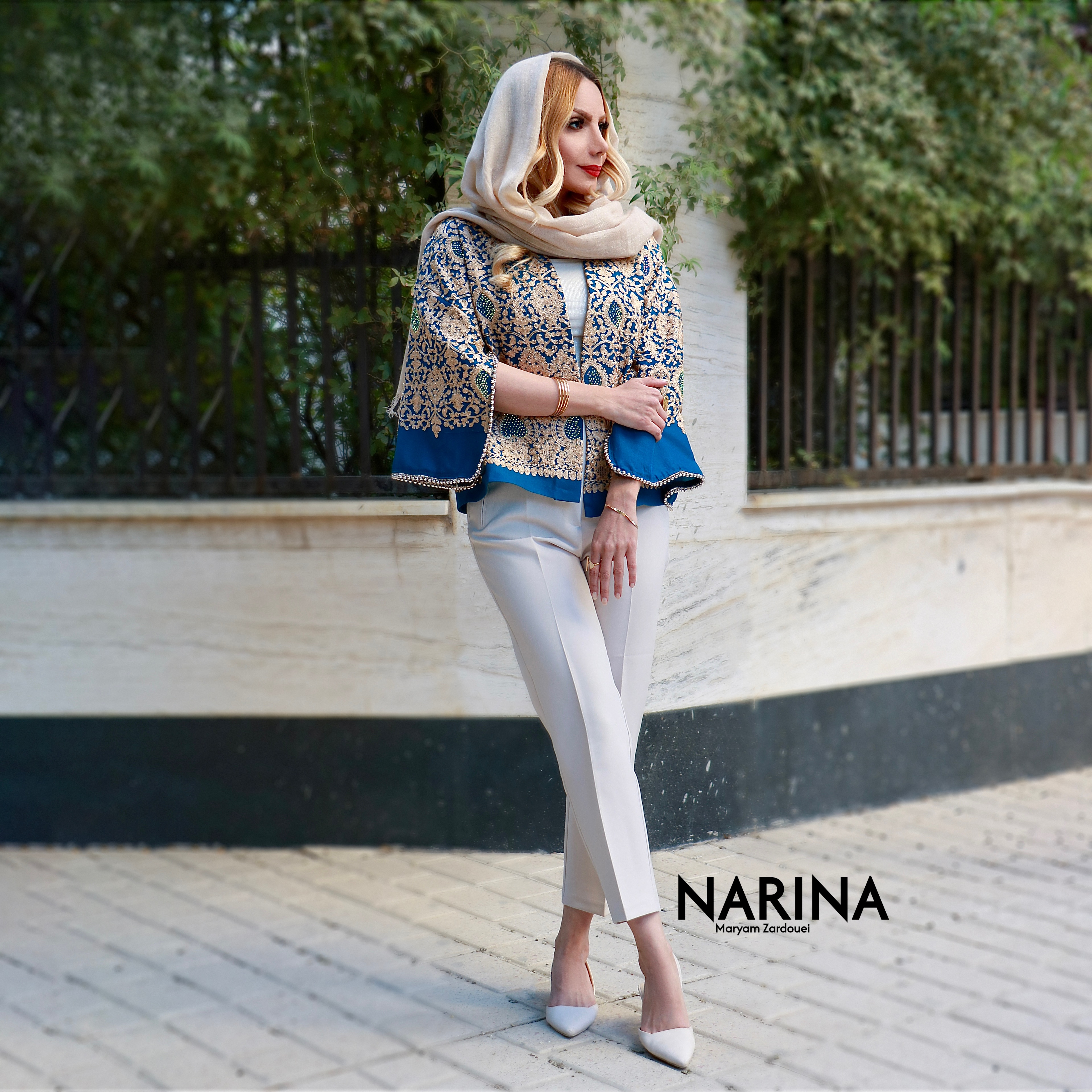 جنس کت حریر هندی سرمهدوزی است داخل کت لایی حریر همرنگ لمینت شده و اصلا بدننمایی ندارد. قسمت سر آستین دارای نوار مغزی مرواریدی رنگ بژ میباشد. قسمت دور سینه کت ۱۱۸ سانتیمتر است.